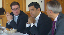 (SPD) mit den Teilnehmern der Capital Media Talks u. a. über die